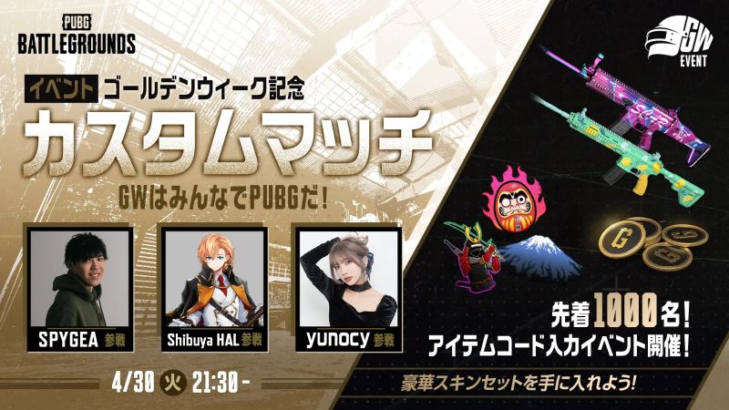 ゴールデンウィーク記念イベントの詳細についてはこちら:https://pubg.com/ja/news/7357