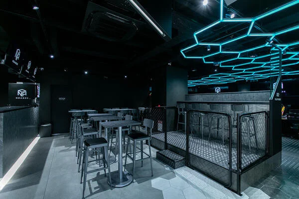 ・23台のRTX4070以上のスペックのPCや、高発色のLEDライトを使用したゲーミングデザインの空間を実装。