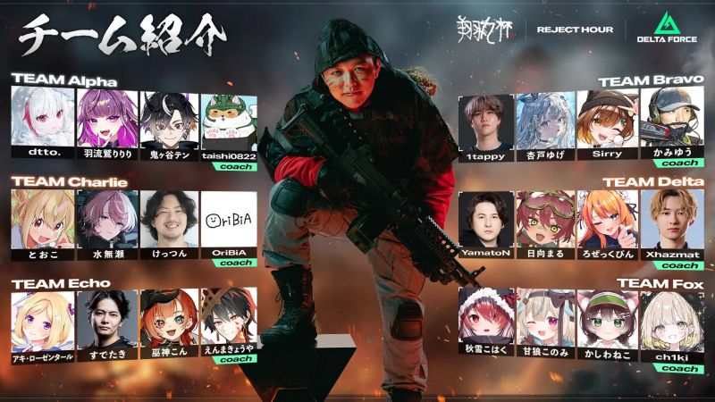 「REJECT Hour 翔丸杯」は、REJECT所属ストリーマーShomaru7がホストを務める特別イベントです。競技タイトルには、戦術要素・脱出要素・PvPvE要素が特徴のDelta Force「オペレーションズモード」を採用し、参加チームが最大総価値を競い合います。